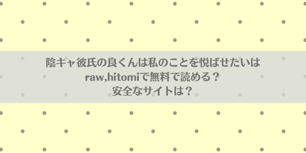 今回は、エロ漫画「陰キャ彼氏の良くんは私のことを悦ばせたい」はraw,hitomiで無料で読めるのか、安全なサイトはあるのか紹介しました。