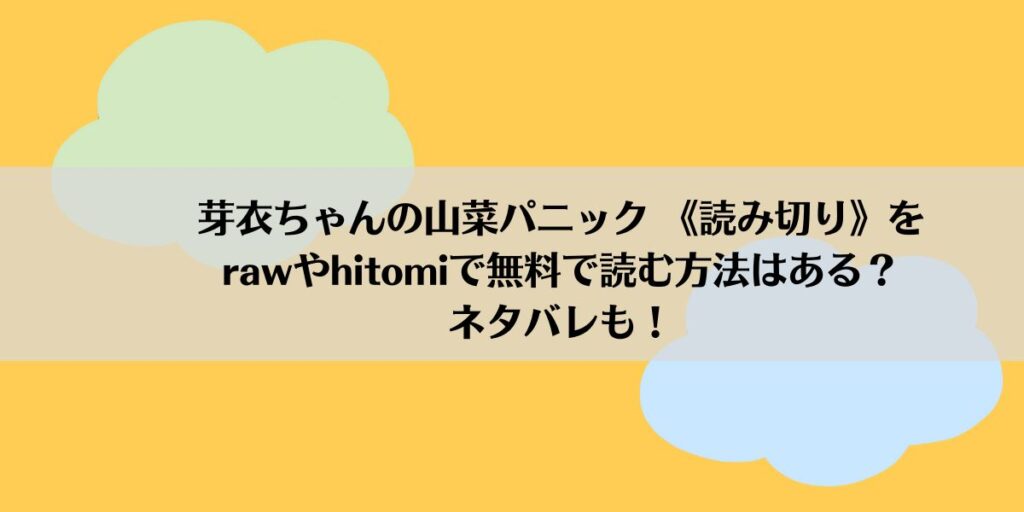 今回はエロ漫画「芽衣ちゃんの山菜パニック」 《読み切り》をrawやhitomiで無料で読む方法はあるのか、ネタバレも紹介しました。